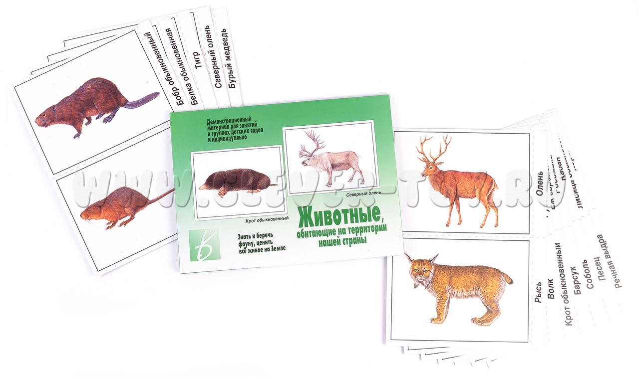 Предлагается демонстрационный материал по фауне нашей страны. Он включает в себя изображения животных. Перед началом использования необходимо разрезать картинки по линиям.