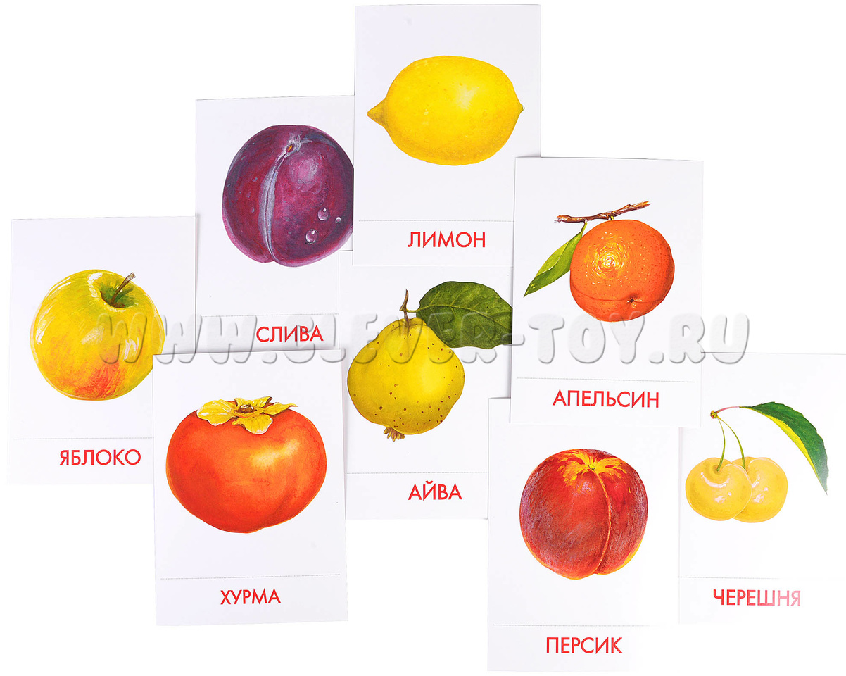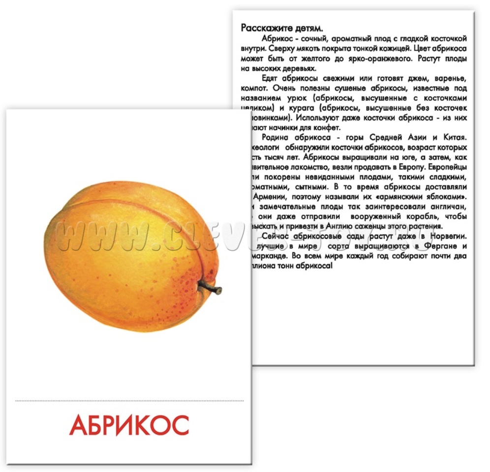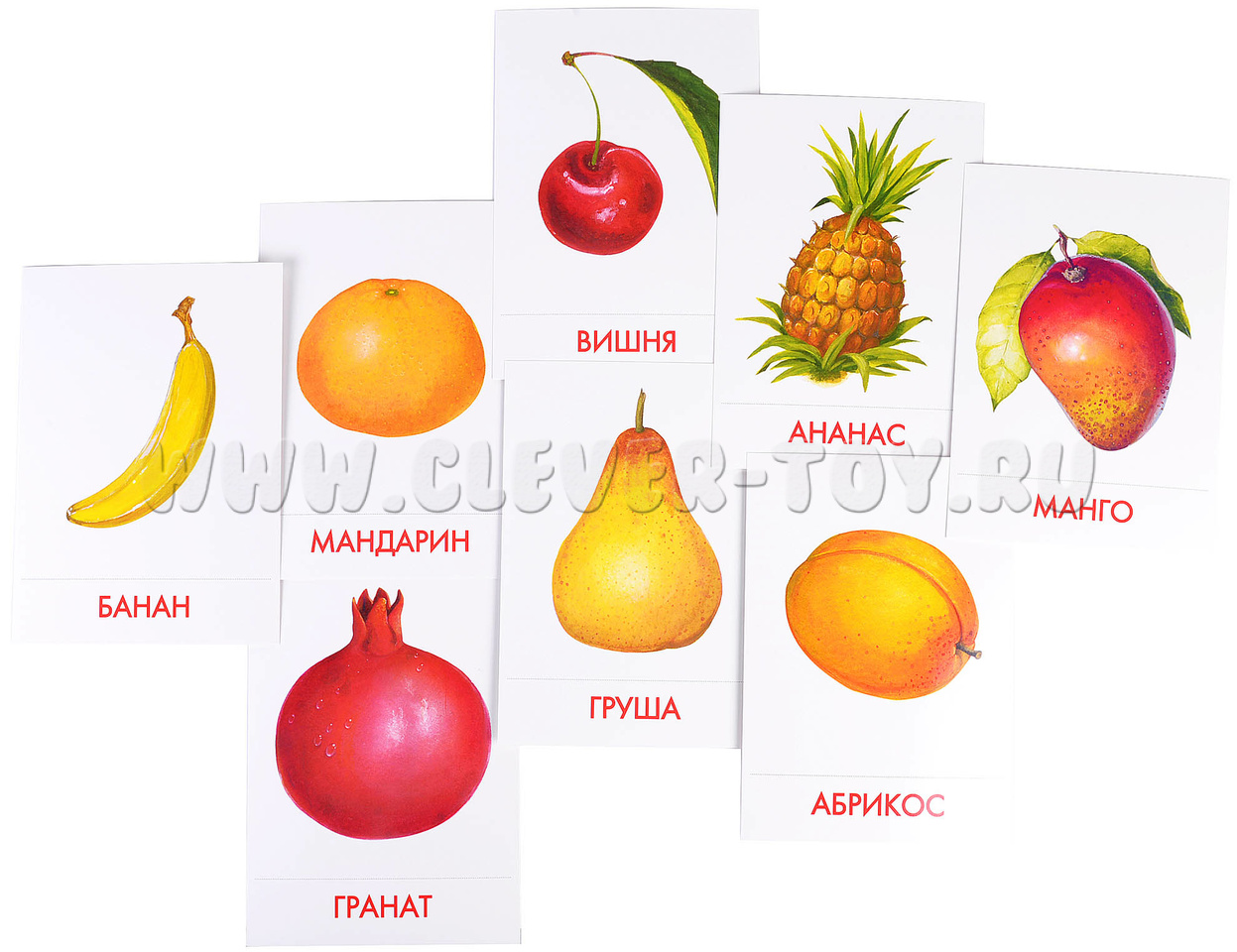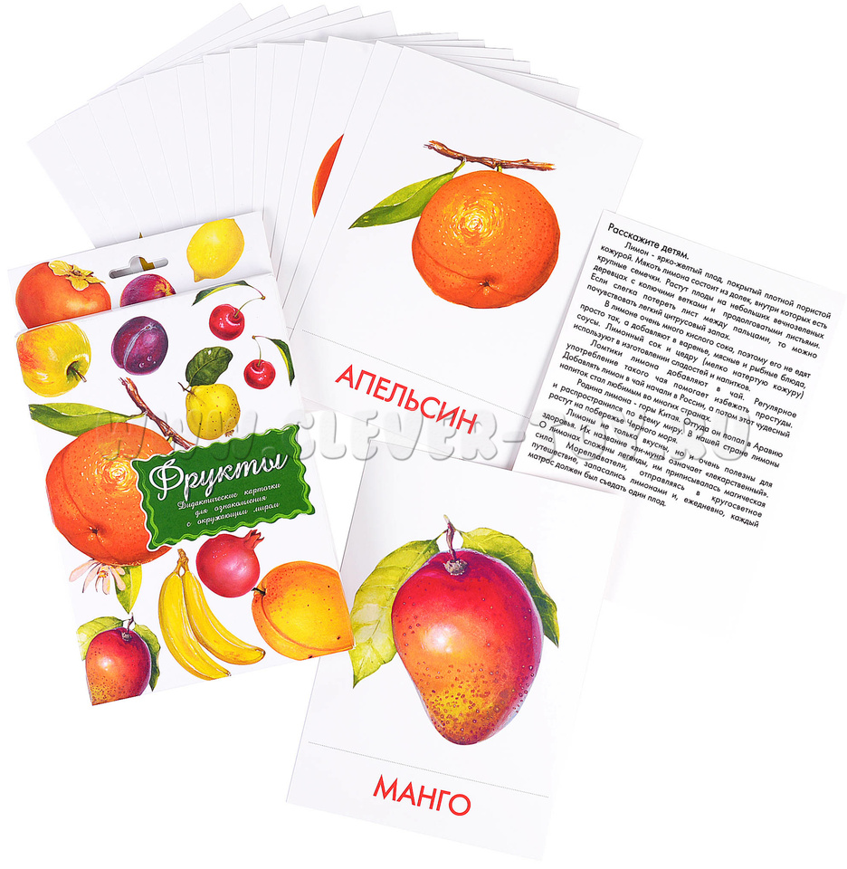 Все картинки на карточках яркие, крупные, детально прорисованные, что делает их наглядными и помогает использовать не только для индивидуальных, но и для групповых занятий. Карточки выполнены из прочного картона, подходят для многократного использования. На одной стороне карточки расположена яркая картинка с изображением и названием фрукта, на обратной стороне – доступная и интересная для ребёнка информация о фруктах (описывает внешний вид фрукта, область произрастания, интересные факты о применении фруктов).