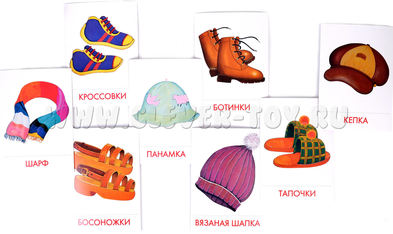 Дидактические карточки "Головные уборы. Обувь" (в плёнке)