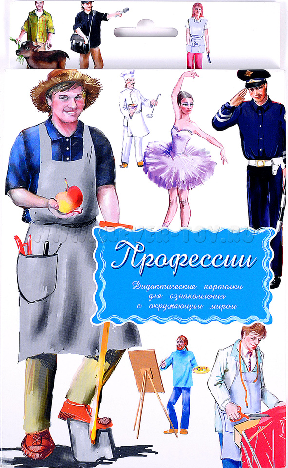 Это пособие является очень удобным дидактическим материалом. Пока ребенок смотрит картинку, Вы рассказываете ему, какая изображена профессия, и как работает человек с данной профессией (на обратной стороне).