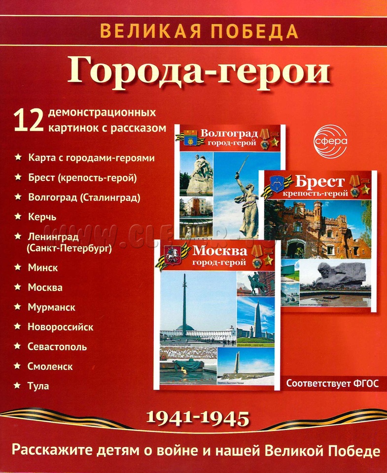 Великая Победа. Города-герои. 12 демонстрационных картинок рассказом на обороте