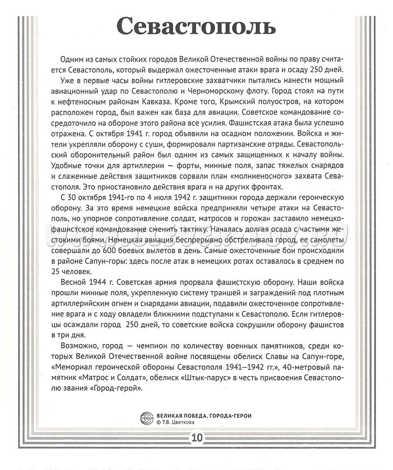 Пособие посвящено героическому подвигу 10 городов и одной крепости бывшего СССР в годы Великой Отечественной войны (1941-1945).