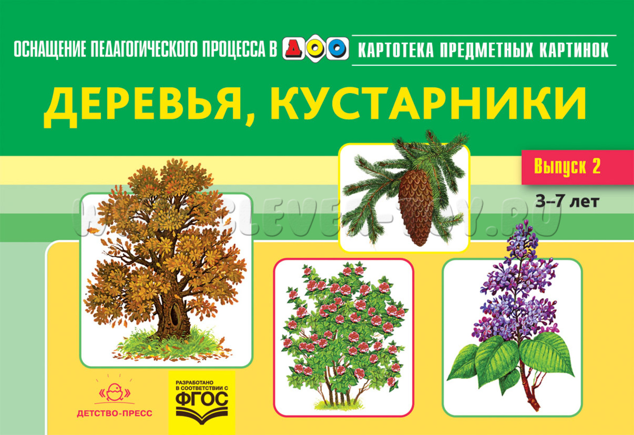 Картотека предметных картинок 02. Деревья, кустарники. 3-7 лет. ФГОС. Дидактический материал