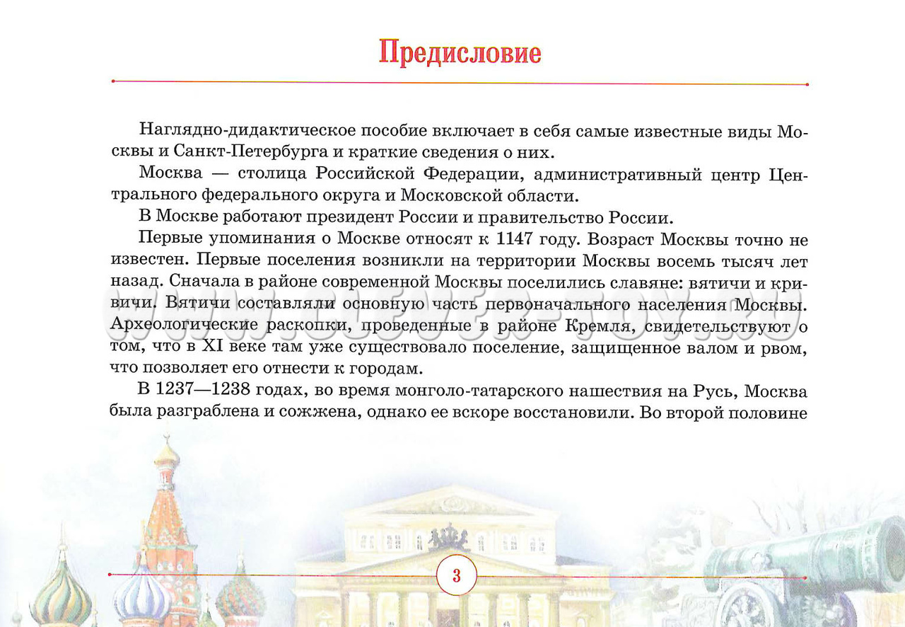 Пособие включает в себя наглядный дидактический материал, комплект сюжетных картинок по лексическим темам «Москва», «Санкт-Петербург», а также сопроводительные тексты к ним.