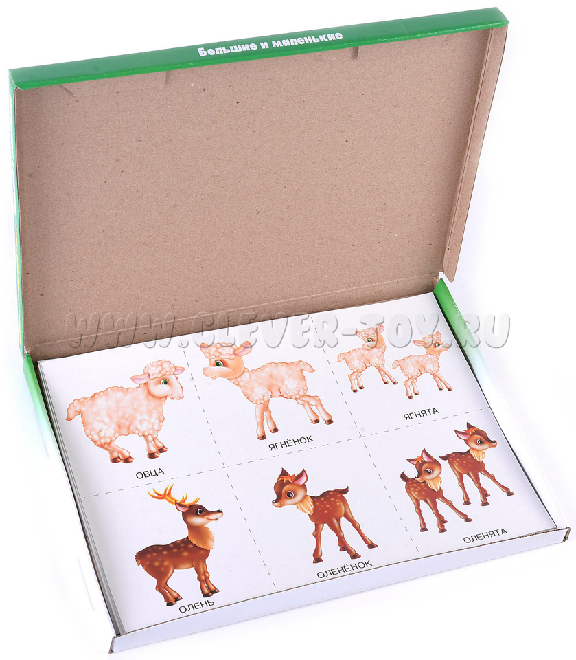 Перед началом игры нужно разрезать карты по пунктирным линиям (получится 72 карточки). Детям раздаются карточки со взрослыми животными, затем ведущий показывает изображения детенышей, а ребята подбирают соответствующие карточки.
