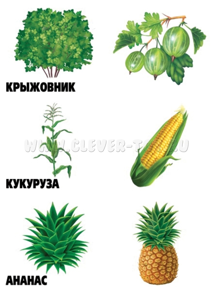 3. Карточки можно делить на группы: фрукты, овощи, растения, кустарники, деревья;