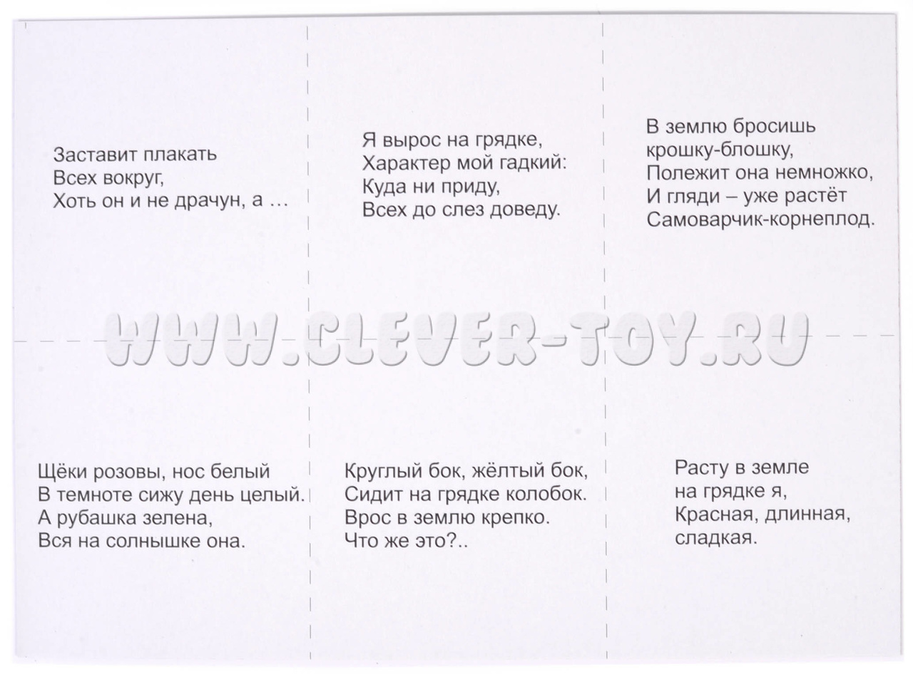 - Развитию логического мышления: каждая карточка содержит интересную загадку о конкретном овоще. Чтобы найти подходящую карточку, дети должны использовать логическое мышление, ассоциативные связи и полученные знания. Это помогает детям развивать и улучшать свои мыслительные способности;