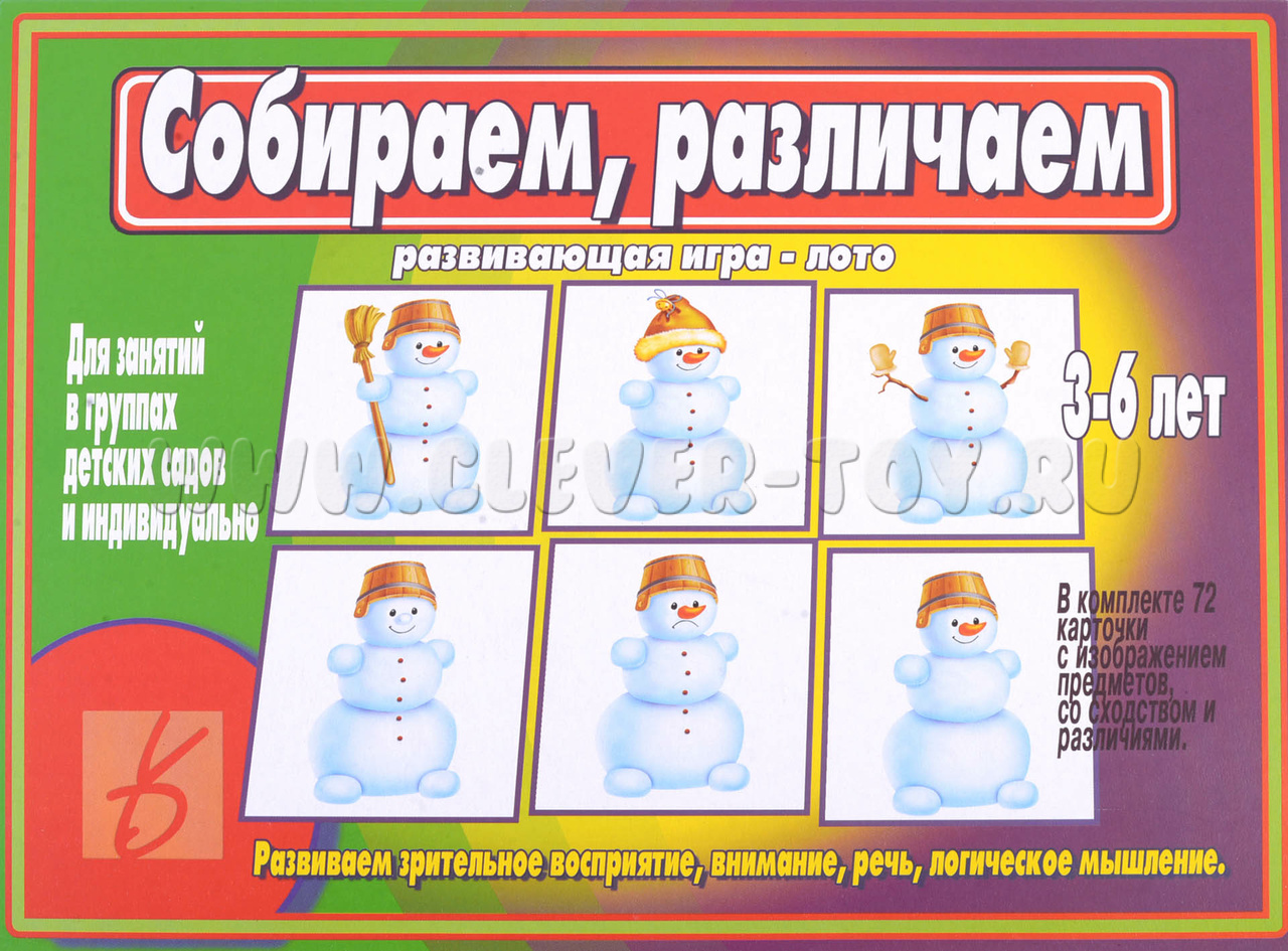 Игра «Собираем, различаем» — это увлекательное путешествие в мир фантазии и воображения для детей 3–6 лет. С её помощью малыши смогут развить зрительное восприятие, произвольное внимание, логическое мышление, память и связную речь.