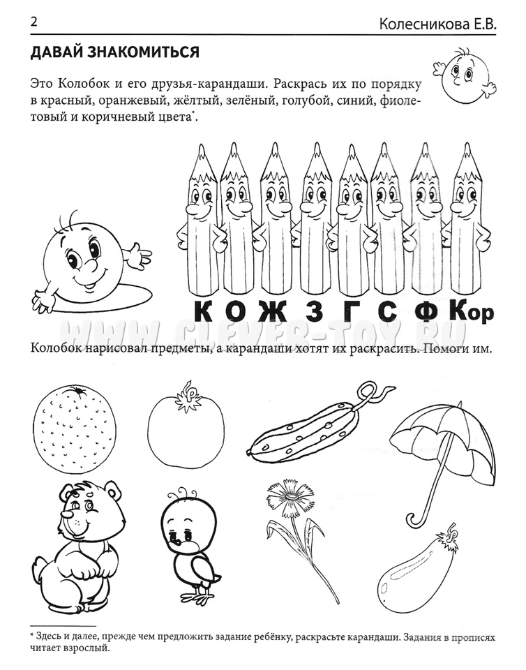 Психологи утверждают, что ребёнок-дошкольник должен учиться, не догадываясь о том, что он учится, поэтому в тетради предлагаются игровые задания от весёлого Колобка и его друзей - цветных карандашей. Такой приём делает процесс обучения привлекательным для детей.