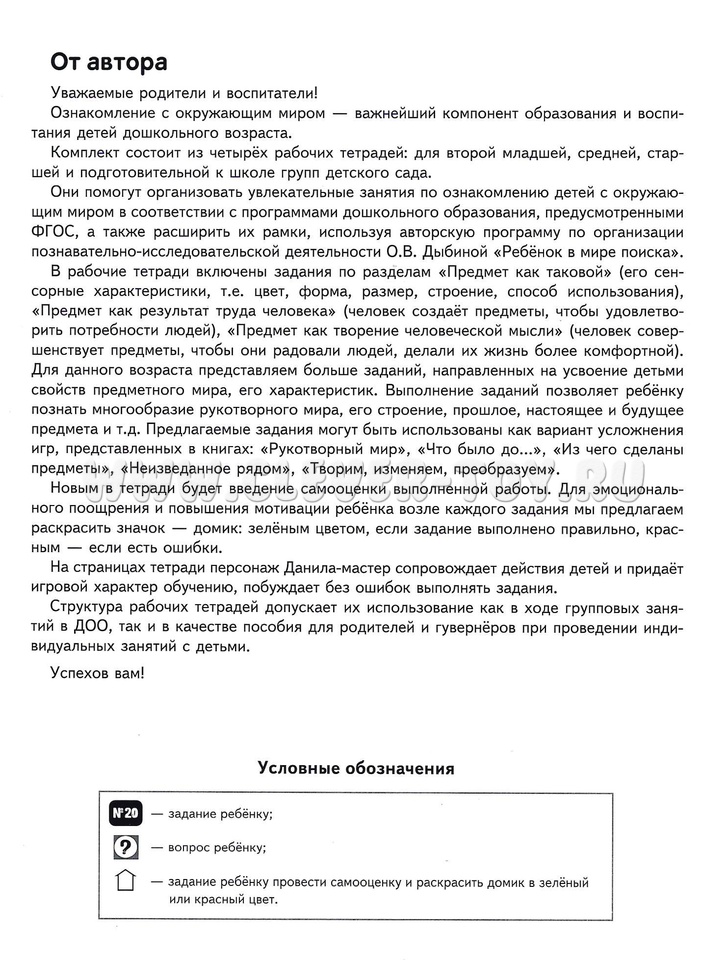 Тетрадь предназначена для работы с детьми 3-4 лет. Может помочь организовать познавательно-исследовательскую деятельность детей по авторской программе О.В. Дыбиной "Ребёнок в мире поиска" в детском саду, дома, в группах развития.