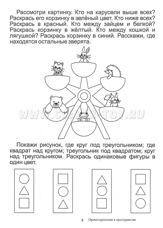 Попросите ребенка рассказать о том, как расположены предметы на рисунках используя предлоги.
