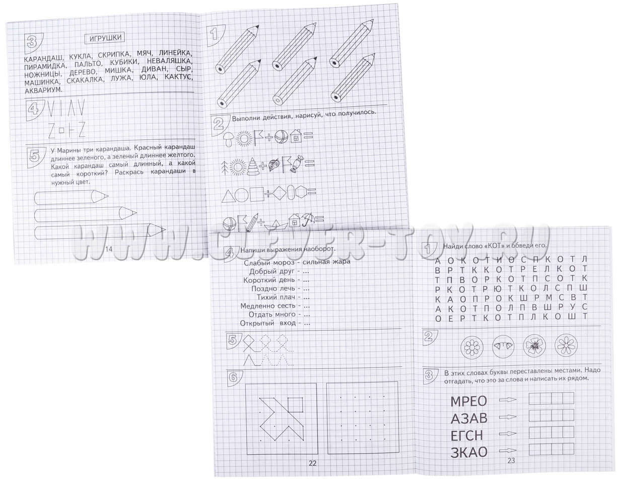 Простые для понимания задания позволят малышам работать с тетрадью как под наблюдением родителей или педагогов, так и самостоятельно, а последовательное освоение программы, подразумеваемой комплектом, поможет подготовиться к успешному освоению курса начальной школы.