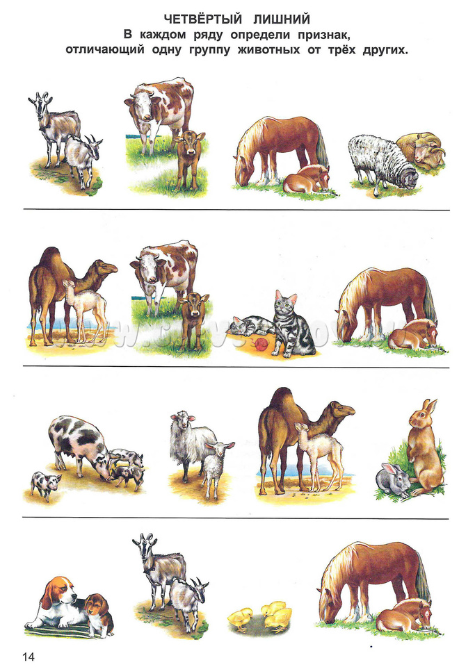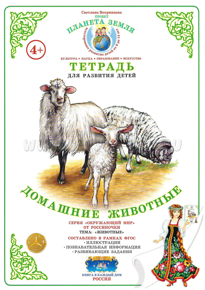 Данная тетрадь представляет комплекс из познавательной информации (это подробное описание каждого домашнего животного : свинья, кролик, лошадь, овца, корова, собака, кошка, верблюд, осёл, коза) и познавательно-игровых заданий. Познавательно-игровые задания: