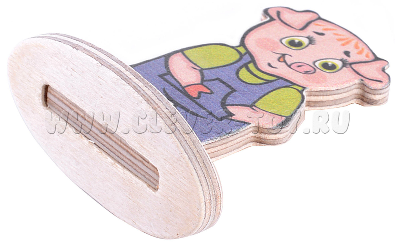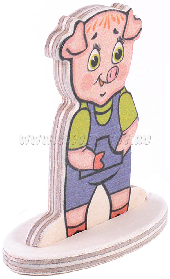 • 7 деревянных фигурок на подставках (3 поросенка, 3 избушки, волк)