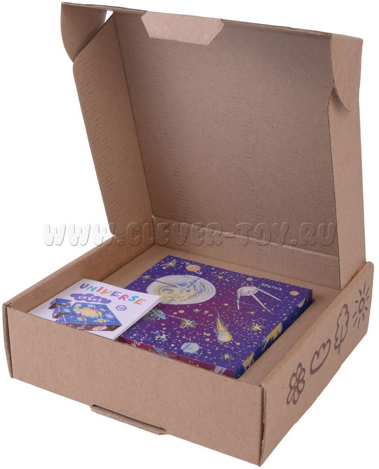 Из кубиков ваш ребёнок может собрать 6 изображений на космическую тему: "Солнечная система", "Луноход", "Спутник", "НЛО", "Восток", "Союз-Аполлон". Мобильное приложение для iOS и Android распознает каждое правильно собранное изображение, и перед глазами ребёнка чудесным образом появляется анимированная 3D модель Солнечной системы. Каждый элемент этого интерактивного представления активен: нажав на любую планету, ракету, спутник, родители и дети узнают интересные факты о жизни планет и устройстве космических кораблей.
