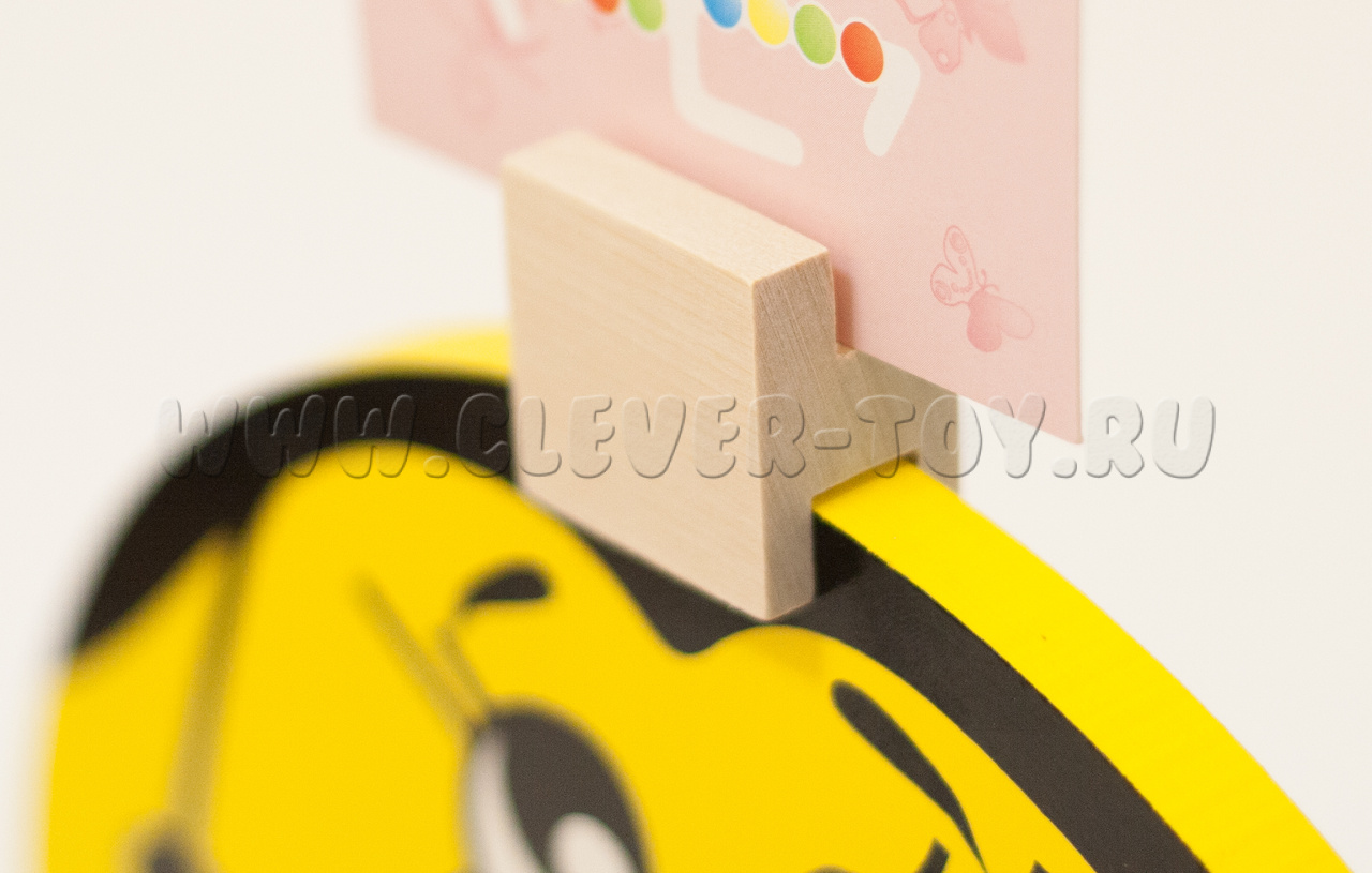 - Устанавливаем карточку в специальный держатель на макушке пчелки и располагаем фишки так, как на картинке;