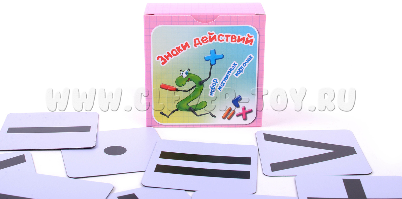 "Набор магнитных карточек Знаки действий" — незаменимый помощник в изучении арифметики для начальной школы. Этот набор был создан по многочисленным просьбам учителей начальных классов как логическое продолжение популярного комплекта "Числа от 1 до 20".