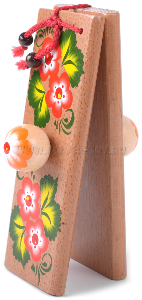 Хлопушка состоит из двух деревянных пластин (150*50*10 мм), скреплённых у основания прочным полимерным шнуром. На боковых сторонах пластин имеются небольшие ручки, за которые инструмент держат при ударах дощечек друг о друга. Звук у бич-хлопушки похож на щёлканье кнута: резкий и громкий. Материал: береза.