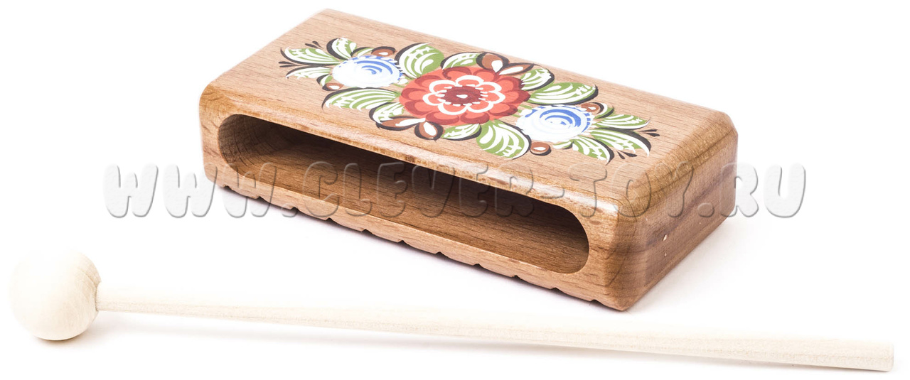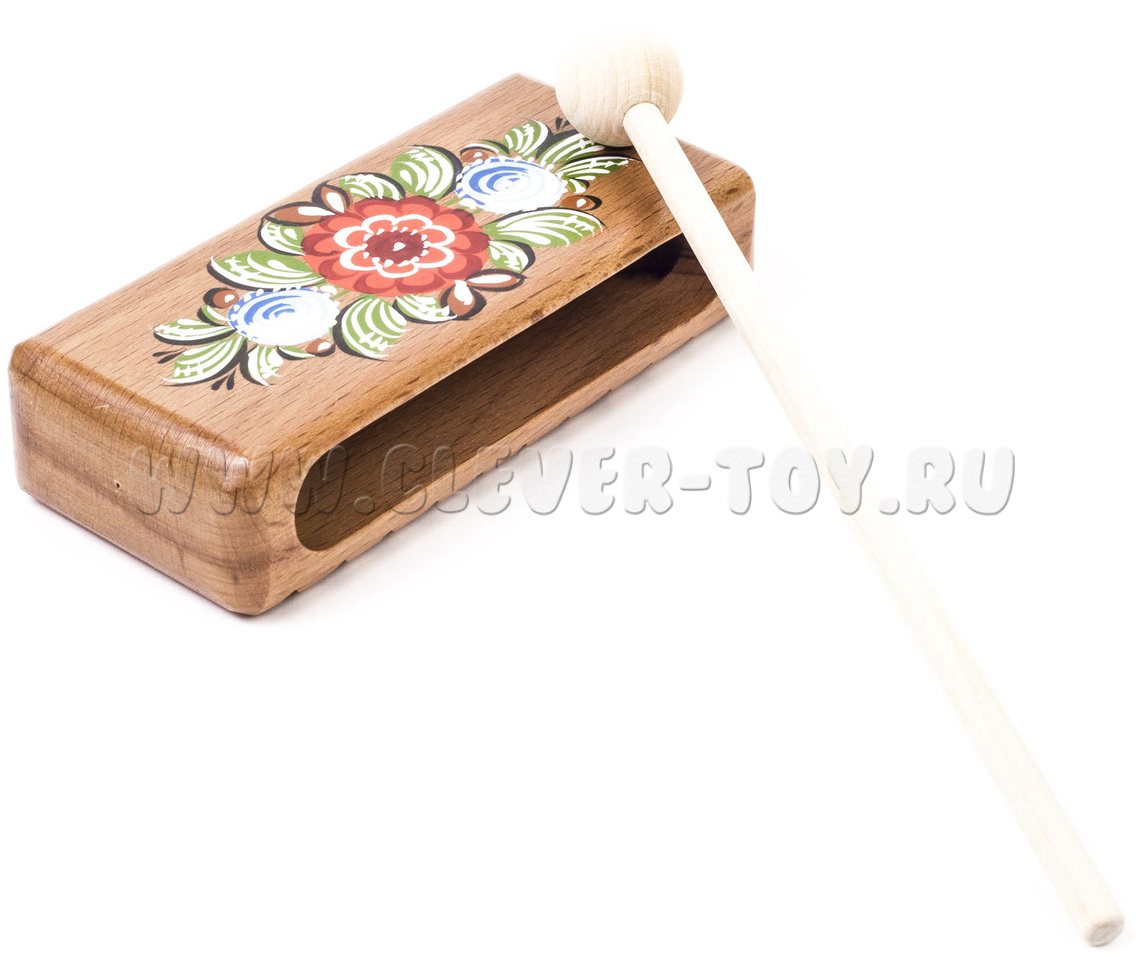 Представляет собой деревянный брус 30х60х100 мм. Музыкальный инструмент комплектуется ударной палочкой. Материал: бук.