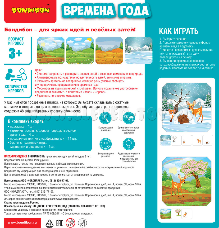 Игра настольная логическая "Времена года"