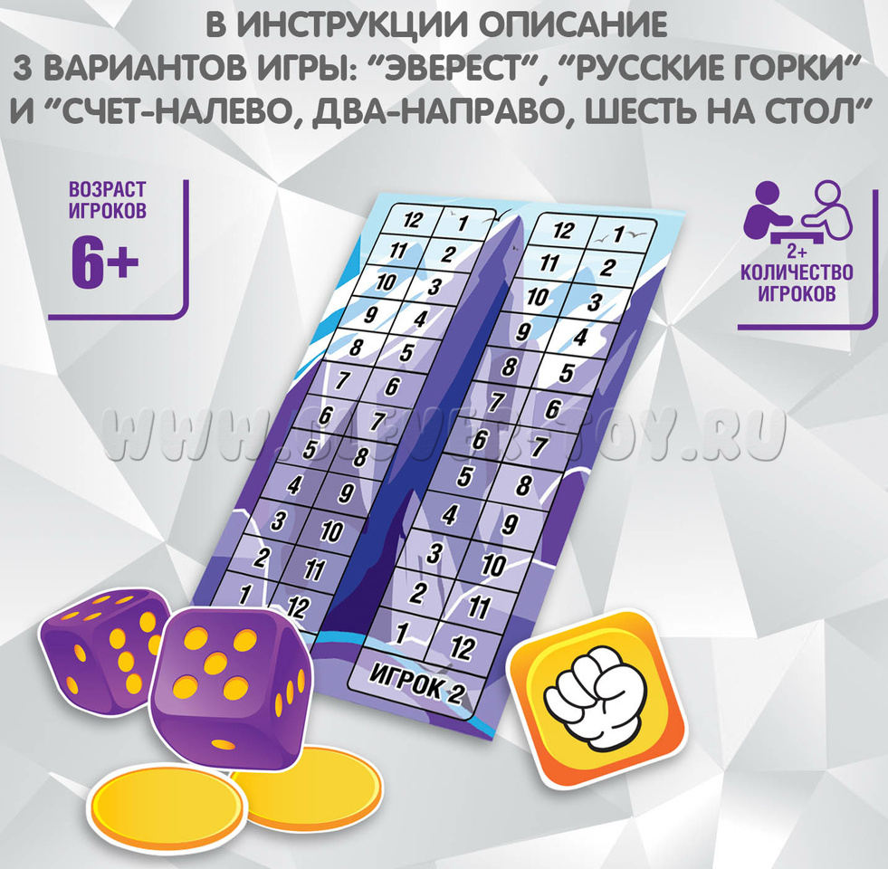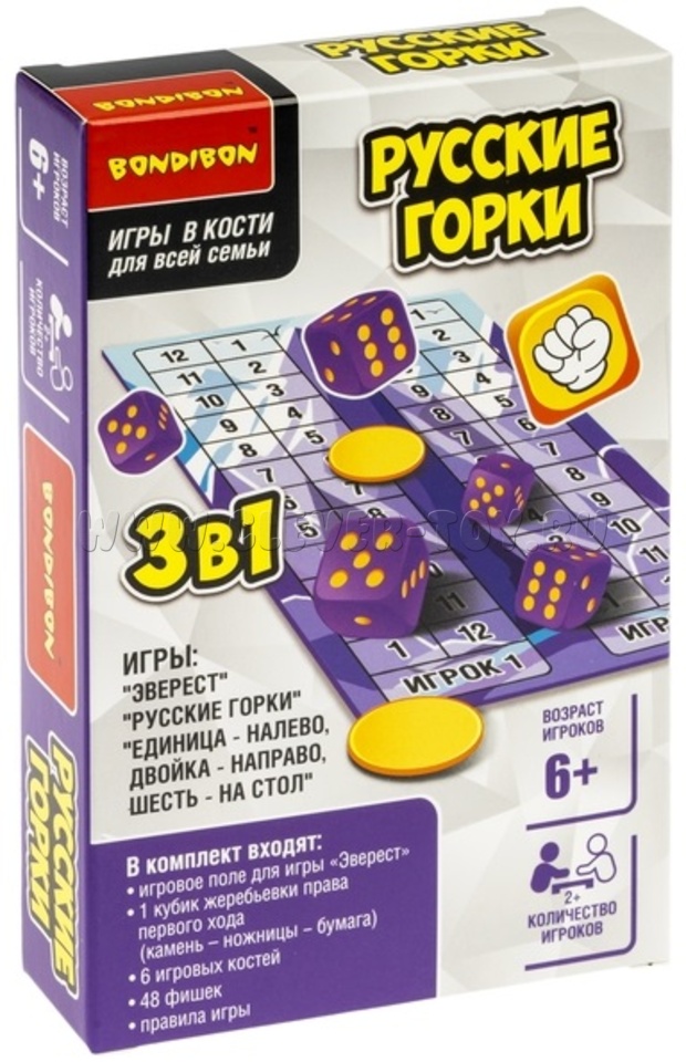 Настольная игра в кости "Русские горки" 3в1 с игровым полем и фишками.