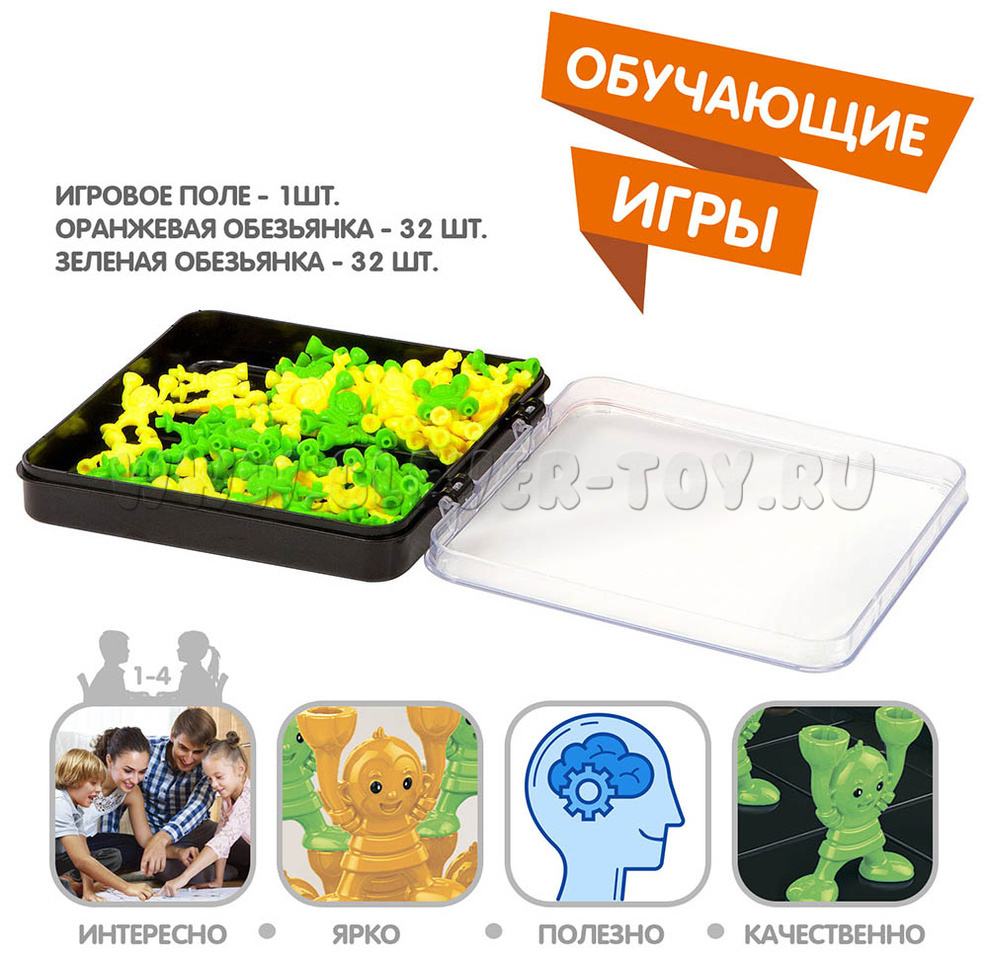 3D крестики-нолики нового поколения! Первый игрок ставит свою обезьянку в любую клетку на игровом поле, а следующий - на поле или на фигурку соперника. Нужно выстроить обезьянок в один ряд по горизонтали, вертикали или диагонали. Побеждает игрок, выстроивший 3 или 4 фигурки в ряд. 2 вида игры и 2 уровня сложности.