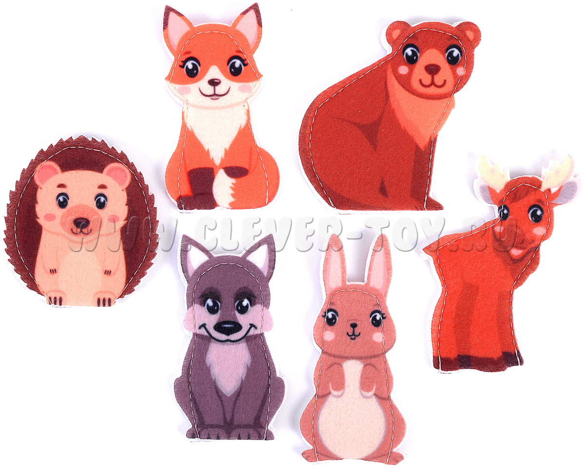 Пальчиковый театр Дикие животные (6 элементов, фетр)
