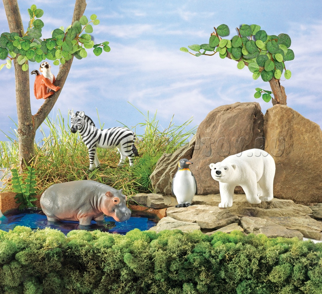 Реалистично проработанные фигурки животных. Соотношение размеров фигурок между собой соответствует действительному.