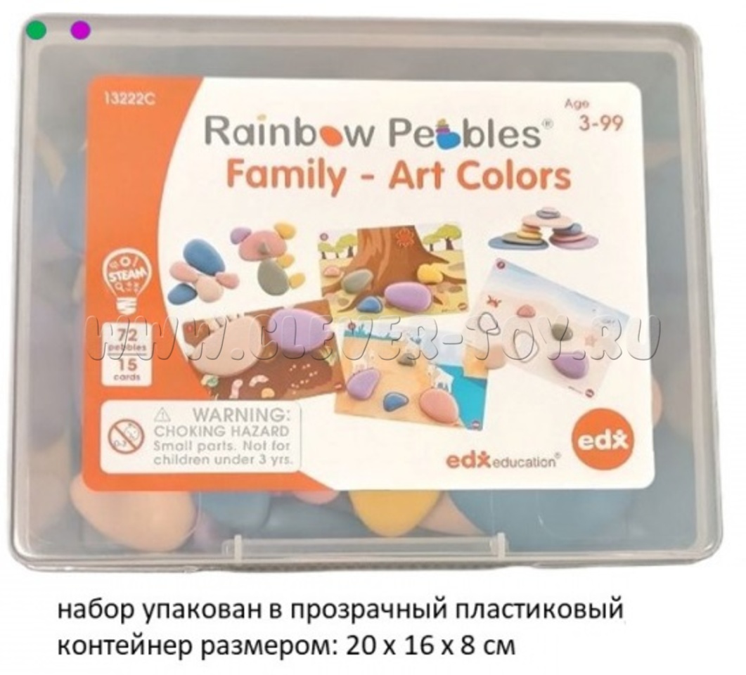 - 72 камешка 6 форм в 2 размерах, 6 цветов,