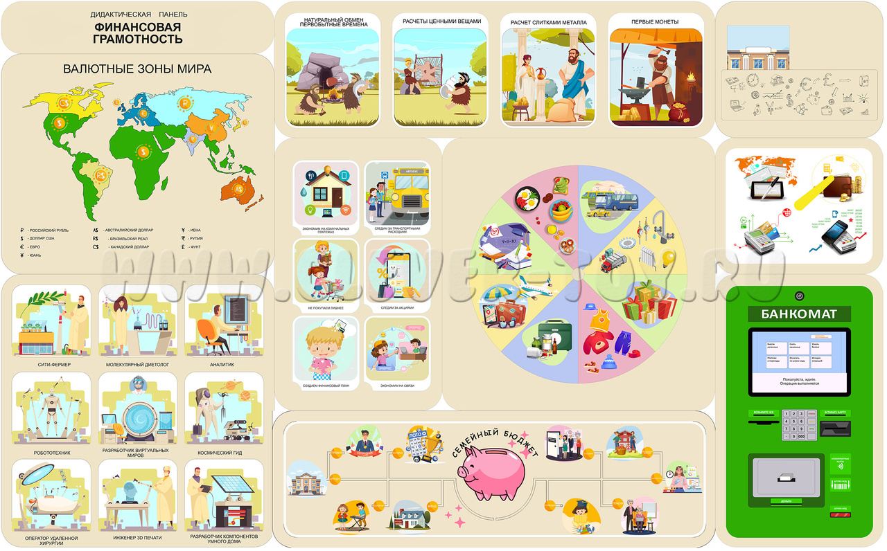 Дидактическая панель "Финансовая грамотность" знакомит детей дошкольного возраста с основами экономики: откуда берутся деньги, зачем их беречь, как планировать покупки и разумно тратить. Панель помогает сформировать первичные представления о финансовой грамотности в доступной игровой форме.