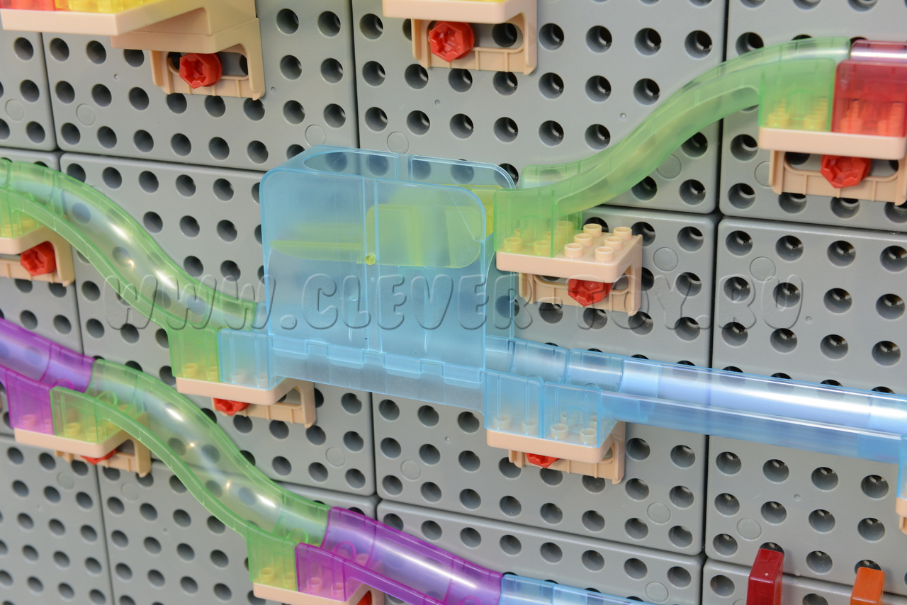 Особенность набора заключается в возможности создания интерактивных маршрутов для шариков. С помощью встроенных переключателей и специальных лестниц юные конструкторы могут регулировать траекторию и скорость движения шариков, создавая различные эффекты: от простых поворотов до сложных каскадов. Один движущийся шарик способен активировать цепную реакцию, заставляя другие шарики вращаться, переворачиваться или запускать эффект домино.