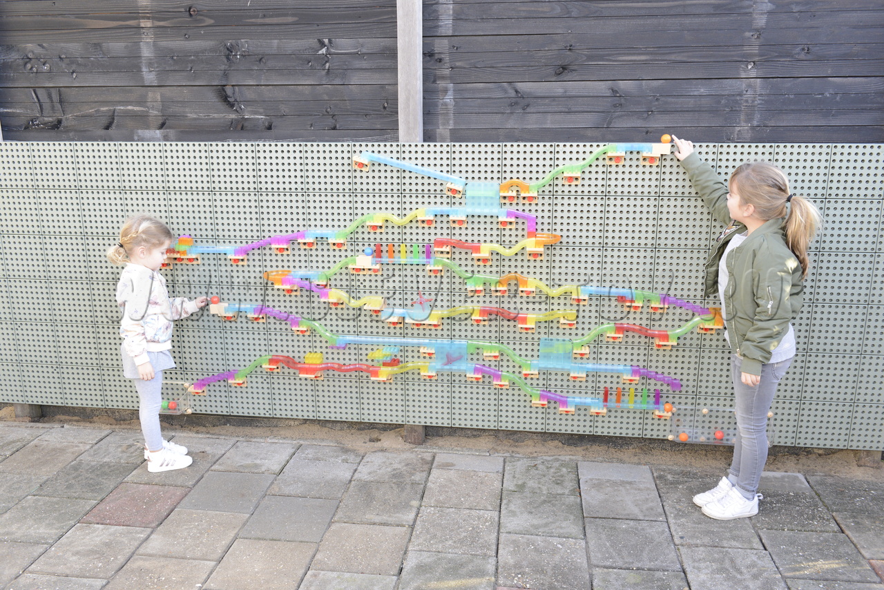 Кинетический трек с шариками представляет собой многофункциональное дополнение к образовательным STEM-стенам любого типа – как стационарным, так и мобильным конструкциям.